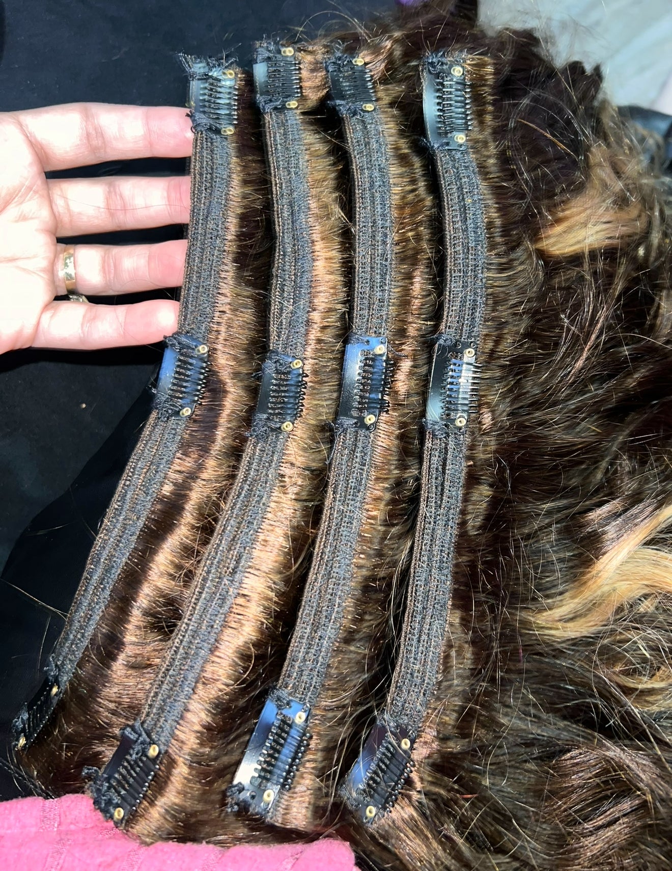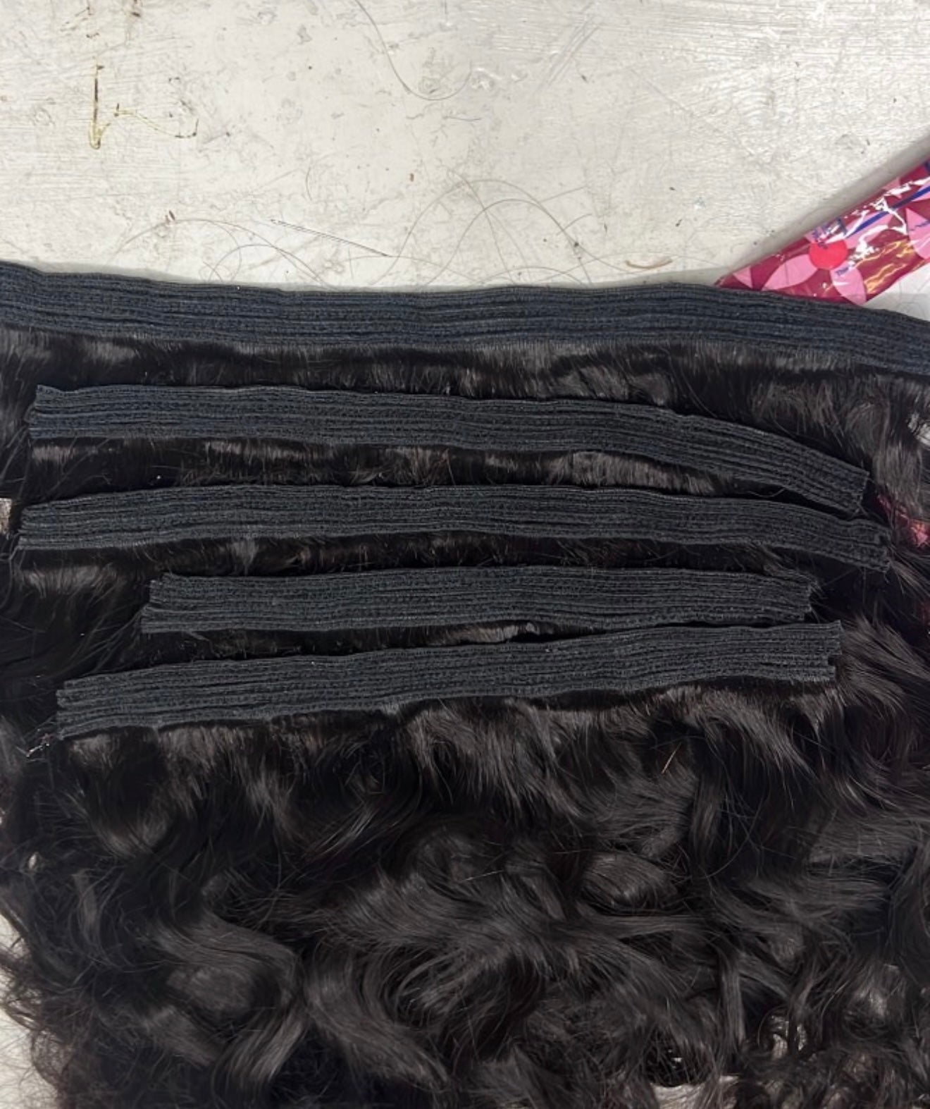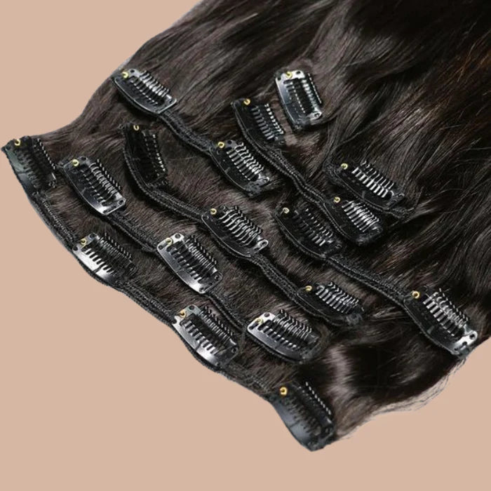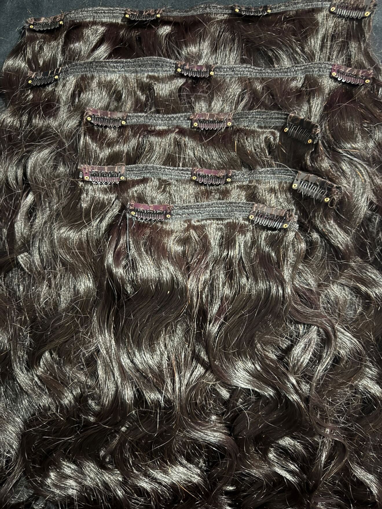 Machine-prepared extensions with or without clips. You choose how you prefer. The measurements used for this machine work are 8, 10, and 12 inches.and from a bundle of hair come 2 layers with lines of 3 and 4.